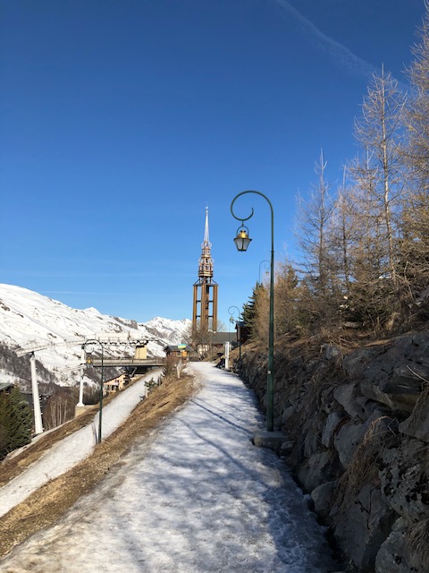 Les Ménuires is een nogal gedateerd Frans wintersportdorp. Gebouwd rond de plek waar duizenden skiërs naar beneden komen of staan te wachten bij liften. De terrassen zijn betimmerd met bruine schrootjes. Maar het mooiste en meest gedateerde is toch het ondergrondse winkelcentrum. Geheel betegeld, bruin hout en winkeltjes waar je van ziet dat die er al decennia zitten. De obligate vreetschuren die ook ’s morgens al naar raclette stinken. Winkeltjes met souvenirs. Bekers, messen, glazen en grote ovenschalen waar je tarti- of croziflette kunt maken. Een feest om te vertoeven.
