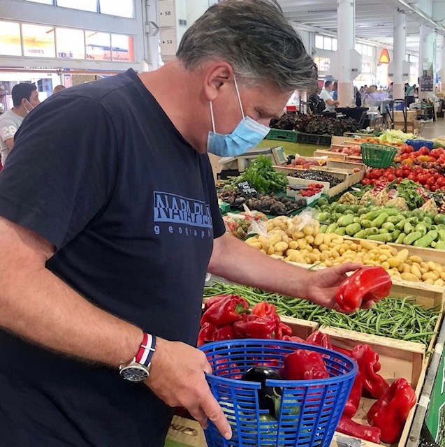 En ook op de overdekte markt in Cannes, zie de foto, droegen mensen een masker. Eenmaal buiten ging het ding weer af. Tot men weer in een van de smalle drukke straten kwam, dan ging ie weer op. Ook hier weer simpel: als je twee meter afstand kunt houden, geen masker verplicht. Kan dat niet: masker verplicht.