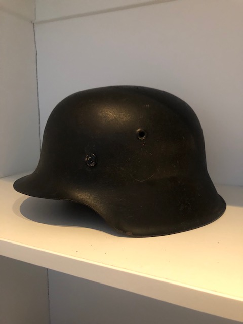 Dat zit zo. Mijn vader had in de oorlog in een kamp gezeten en de oorlog en Duitsland waren bij ons thuis moeilijke onderwerpen. En als je vader iets zo moeilijk vindt moet het wel heel belangrijk zijn. De oorlog was voor mij dus heel intrigerend. Vandaar de Engelse helm. Thuis had ik nog een Nederlandse helm waar mijn vader ooit mee thuiskwam. Een Duitse helm, de helm van de vijand, was een van mijn grote wensen.