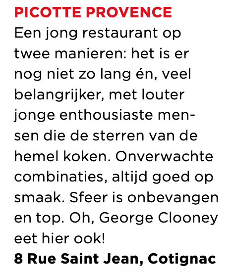Het is niet Frans goedkoop, dat was La Terrasse wel. Je weet direct als je je bord voor je ziet dat hier liefde en precisie in zit, dat kost gewoon wat. Laat je niet weerhouden: gewoon ernaartoe! Neem de tijd in Cotignac, ook al de moeite waard.