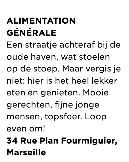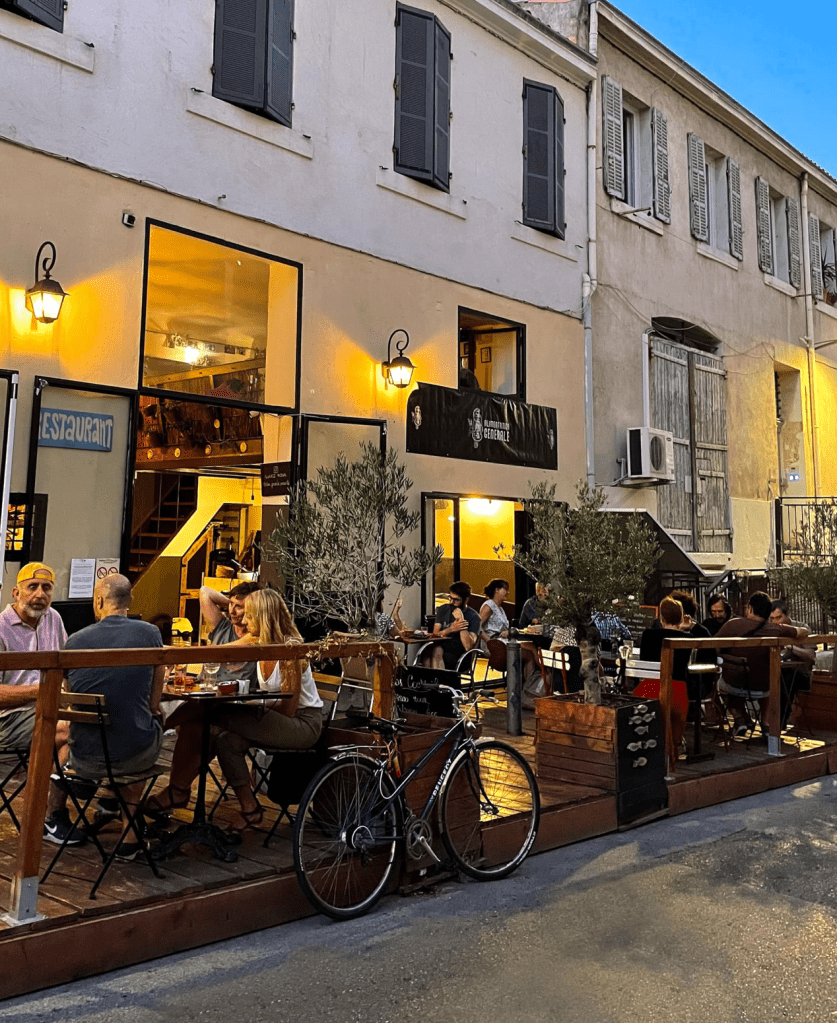 En dus waren we weer eens in Marseille. Het was heet, hartje zomer. We hadden een hotel aan de oude haven. Handig parkeren en de deur uit en je staat in de drukte. Perfect dus. Na een dag wandelen, een boottocht naar Château d’If, hadden we trek. We liepen naast het hotel een straatje in omhoog omdat we in die buurt een restaurant hadden gezien. Heel idyllisch, in een soort tuin. Dat bleek vol te zijn en dus liepen we maar weer verder richting stad. En toen zagen we een terrasje met ook wat tafeltjes op een trottoir, een tent met een überhippe uitstraling. Alles leek te roepen: wij zijn GenZ of zo en hier is het hip.