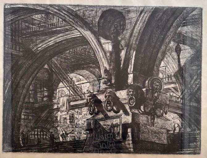 Mijn hart maakte een sprongetje en mijn gedachten gingen naar Piranesi. Wat hij 250 jaar geleden had bedacht, was hier vormgegeven. Onbedoeld, denk ik zo. Hij kon tevreden zijn. Ik ook.