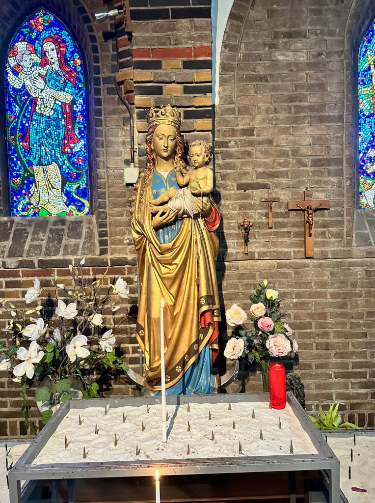 Ik ging naar binnen via de Mariakapel, veel mensen waren er nog niet. Het koor zat op de vaste plek, de pianist was er en verder ongeveer tien anderen. Je kunt kiezen waar je gaat zitten, op een fijne stoel of op een harde rechte bank. Ik kies altijd voor het laatste want het is de kerk hè, daar moet je voelen dat je er bent.
