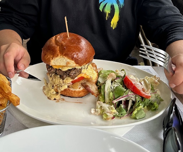 Hoe vaak al heb ik er gegeten? Ook vaak. Meestal goed, soms niet, maar meestal wel. Bestel iets simpels, iets lokaals en dan is het altijd wel prima. Een van de keren dat het niet lekker was, voor mijn jongste zoon dan, was toen hij ergens een grote hamburger bestelde. Het vet en de kaas dropen tussen het veel te zachte broodje uit. Dode sla was de garnering. Van de weeromstuit gooide hij zijn glas cola om. Aan duizend stukjes. De ober, een prachtige zachtmoedige queer kwam direct en begon hem af te drogen en alles op te ruimen. “De rien, zei hij. Waarmee de hamburger ruimschoots was gecompenseerd. Zo zie je maar: het komt altijd goed in Marseille.