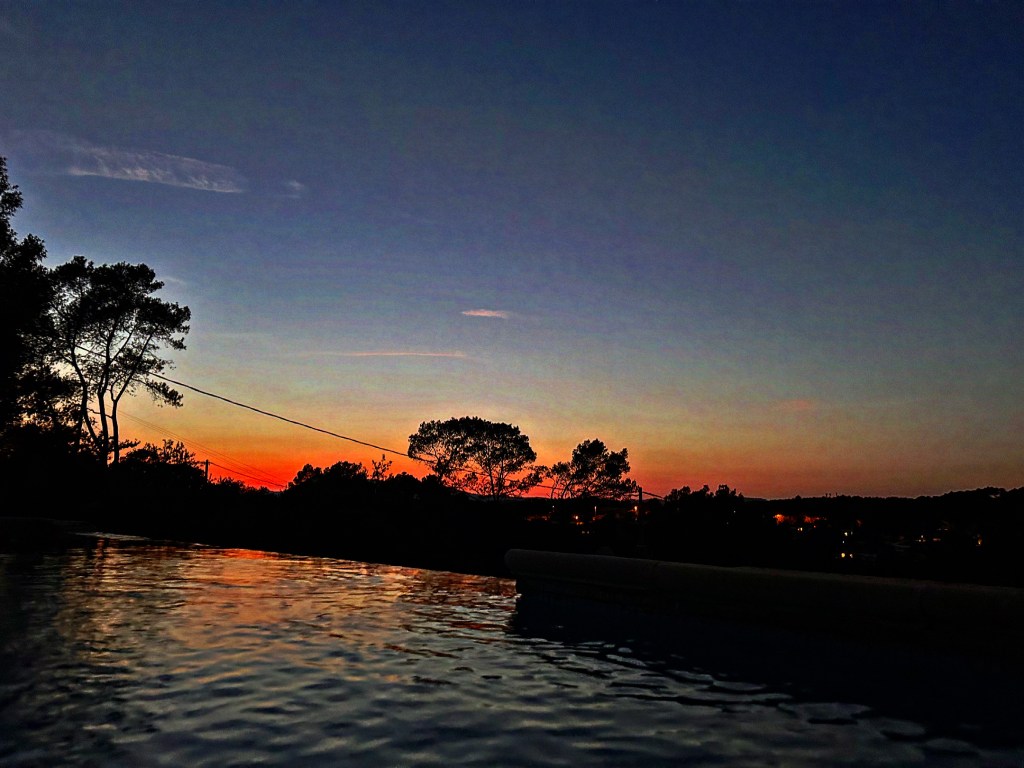 Het uitzicht is nog steeds geweldig en als ik ’s avonds op de rand hang en in de verte de lichtjes van Entrecasteaux zie flikkeren dan ben ik intens gelukkig. Het zwembad blijft.