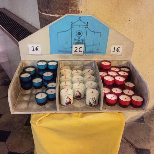 Comme d’habitude wordt mij koffie met een glas water gebracht. Ik zit en kijk mensen, zoals iedereen in Frankrijk op een terras doet. En als ik uitgekeken ben leg ik geld op tafel, sta op en loop naar de kerk. Iedere dag steek ik hier een of meerdere kaarsjes aan. Voor de levenden en voor de doden. Het schijnt ook te werken als je er niet in gelooft.